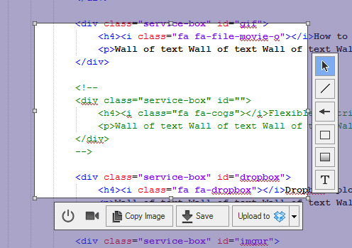Toolbar on the right has tools for editing the shot. E.g. you can add some text, arrows, lines and other shapes to explain your thoughts. Editing shots is described in the next section.