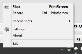 Screenshot of CloudShot System Tray menu made with CloudShot.